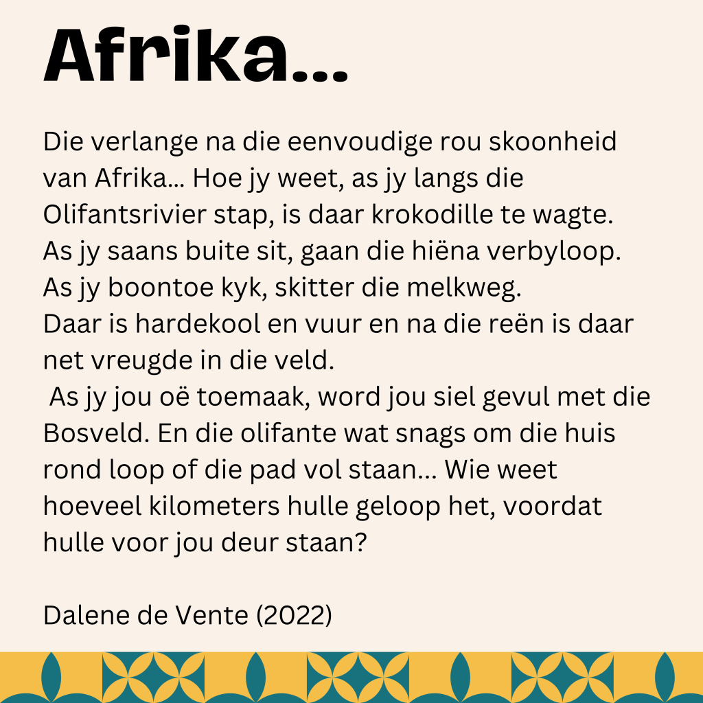 As jy jou oë toemaak, word jou siel gevul met die Bosveld. En die olifante wat snags om die huis rond loop of die pad vol staan… Wie weet hoeveel kilometers hulle geloop het, voordat hulle voor jou deur staan?
